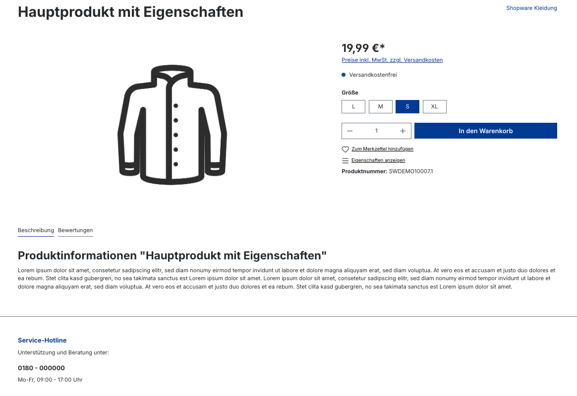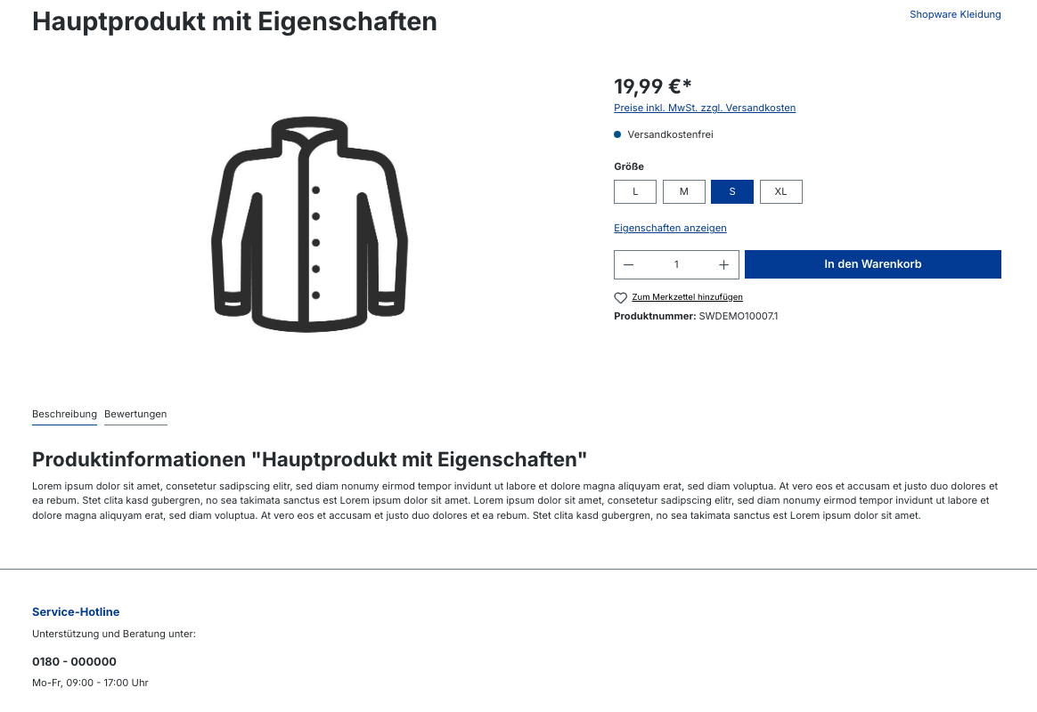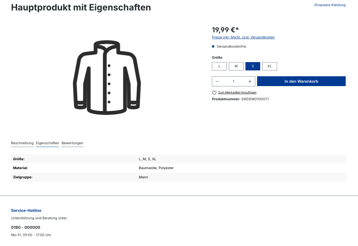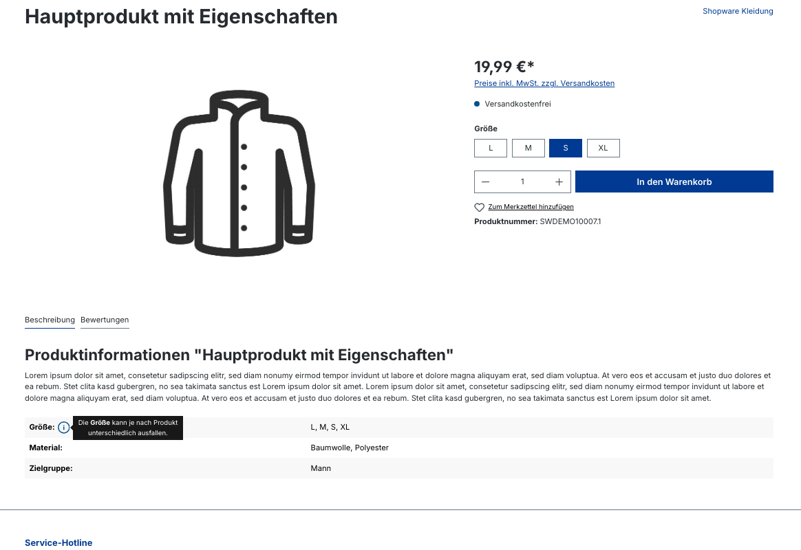 Die Shopware 6 - App "Anzeige der Eigenschaften in einem eigenen Bereich auf der Produkt - Detailseite" ermöglicht es, Eigenschaften in einem eigenen Bereich auf der Produkt - Detailseite anzeigen zu lassen.