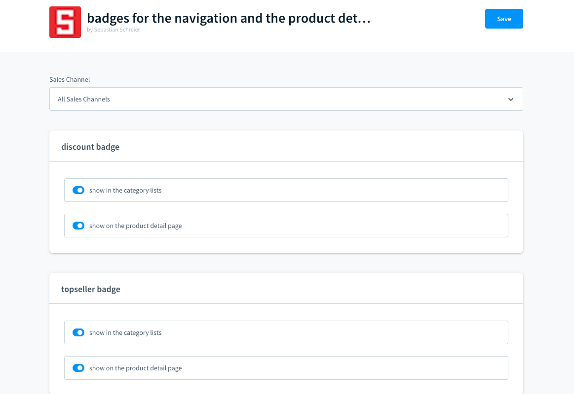 Badges für die Kategorielisten und die Produkt - Detailseite