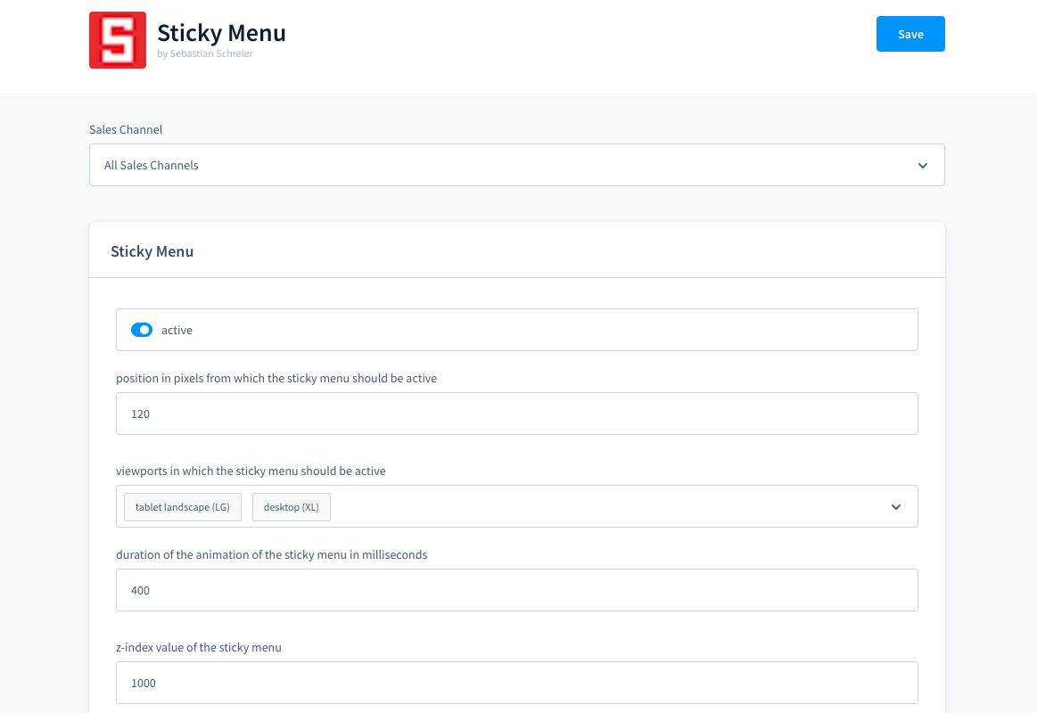 - die Festlegung, ob das Sticky Menü aktiv sein soll