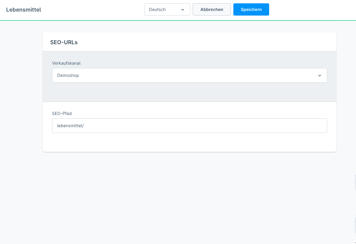 {% for part in category.seoBreadcrumb %}{{ part|lower }}/{% endfor %}Falls es erforderlich sein sollte, kann auch eine Kategorie über eine individuelle URL erreichbar sein. Dazu legt man bei der jeweiligen Kategorie im Tab "SEO" nach der Auswahl eines Verkaufskanals einen individuellen "SEO-Pfad" fest.