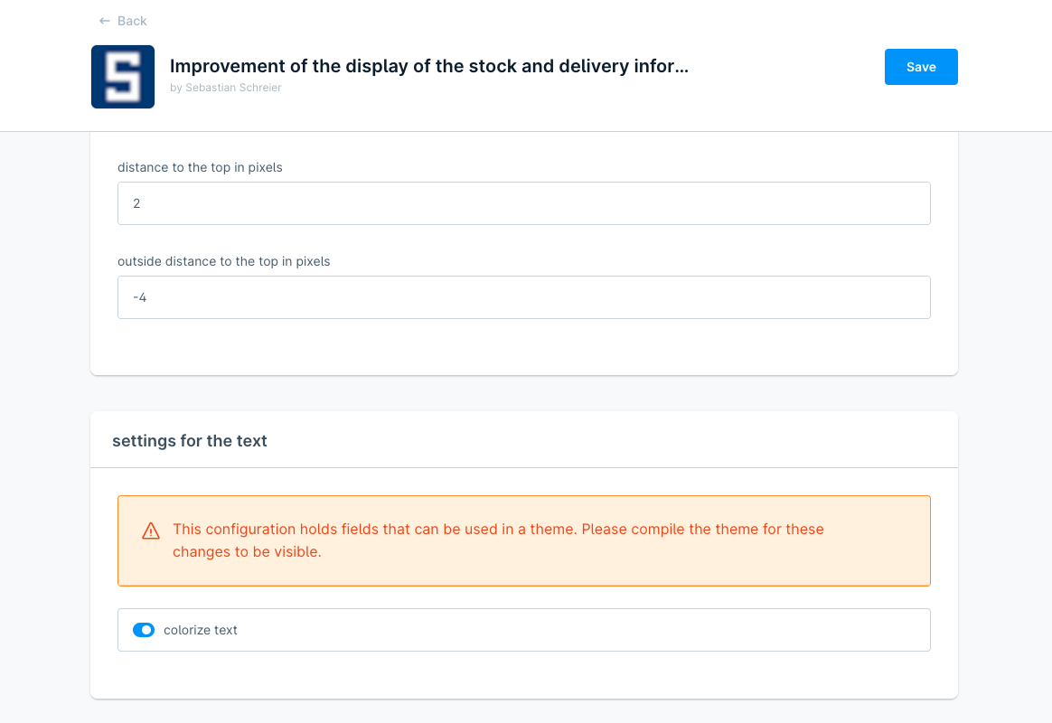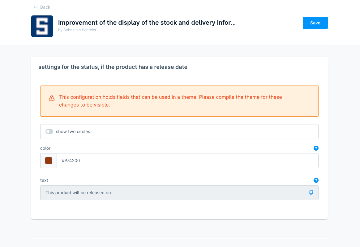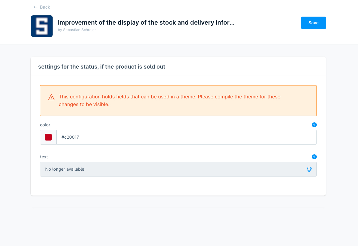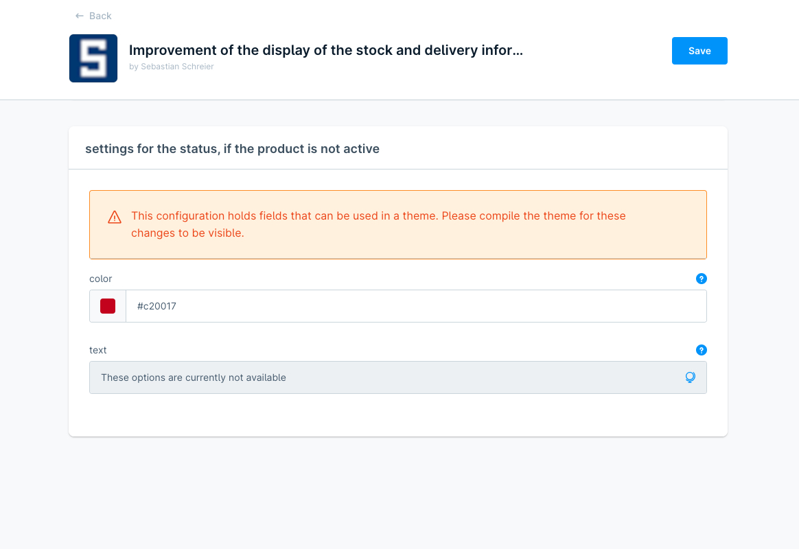 Darüber hinaus kann innerhalb der Konfiguration der Erweiterung für die einzelnen Status die jeweilige Farbe und der Text angepasst werden.