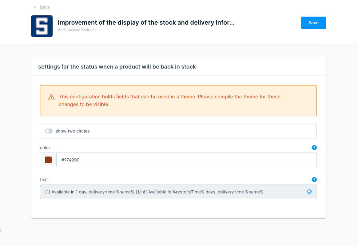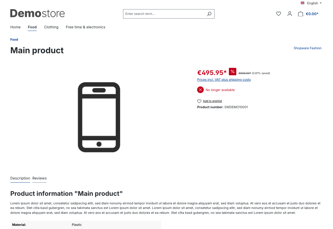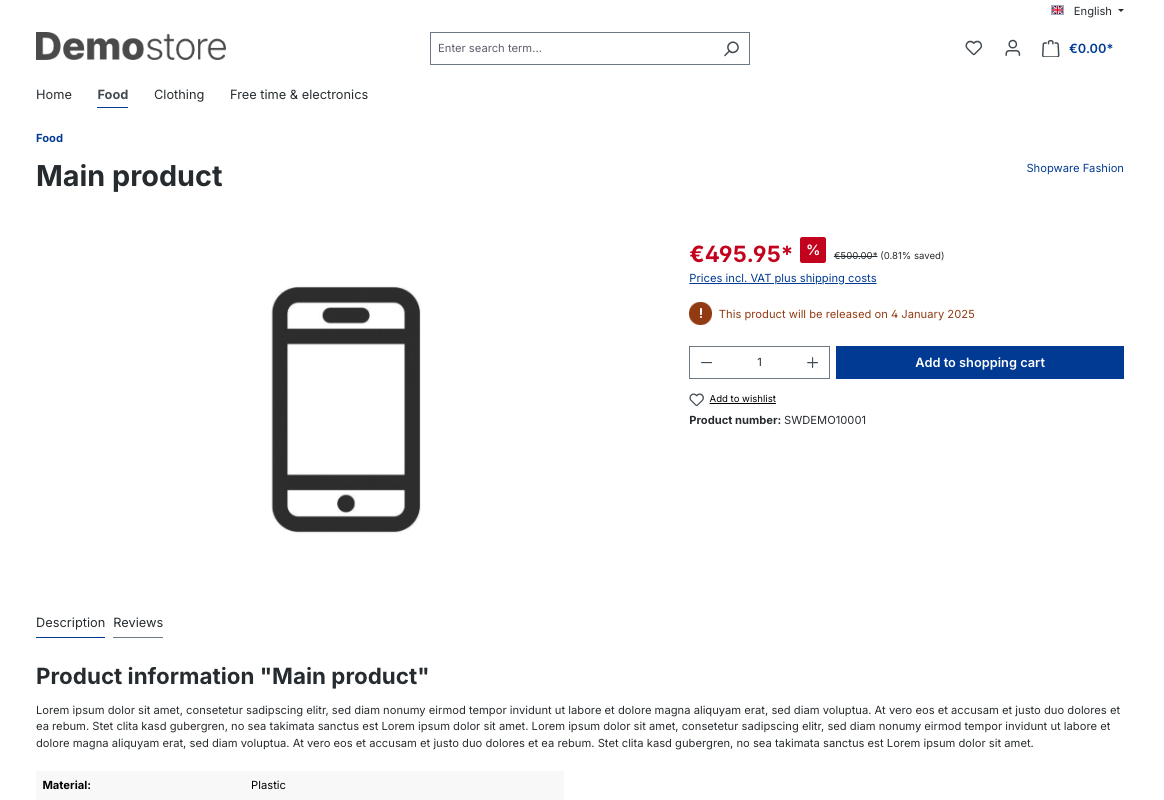 Die Shopware 6 - App "Verbesserung der Lagerbestands- und Lieferbarkeitsanzeige" verbessert die Lagerbestands- und Lieferbarkeitsanzeige auf der Produkt - Detailseite.