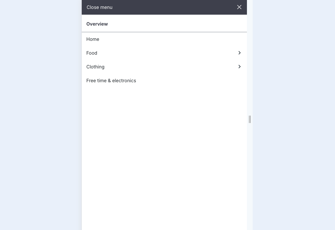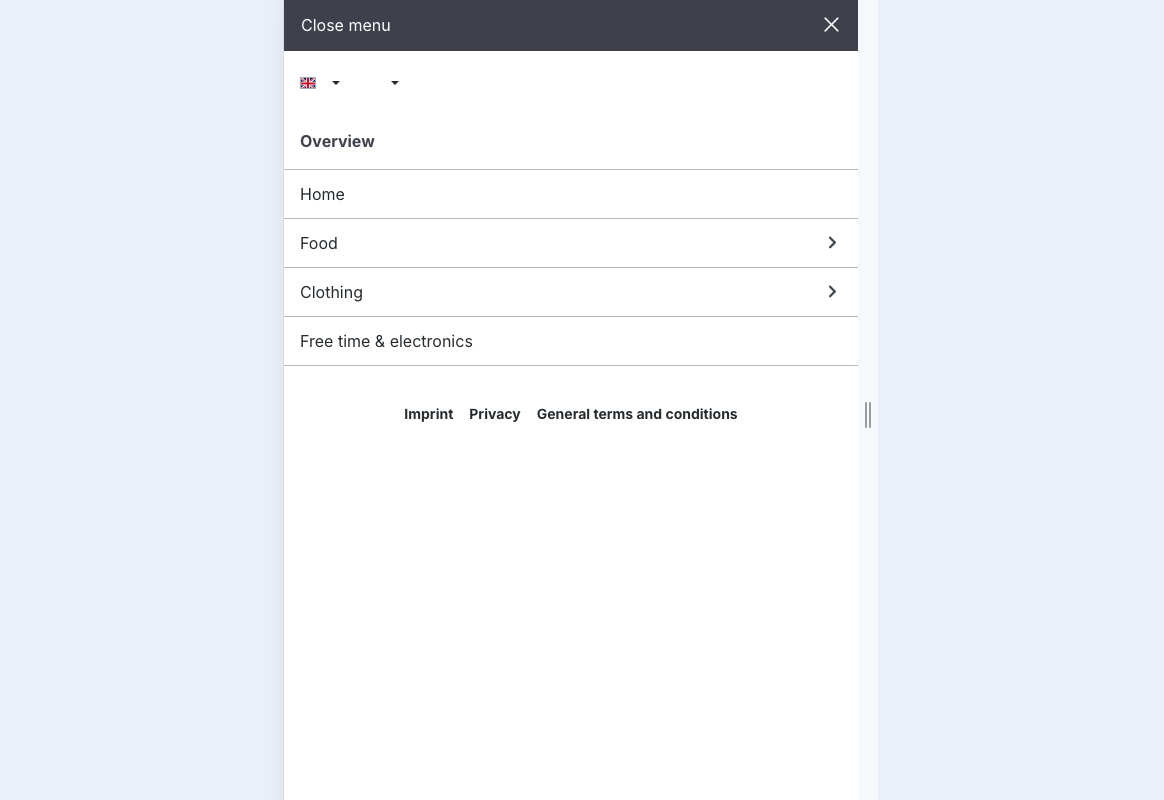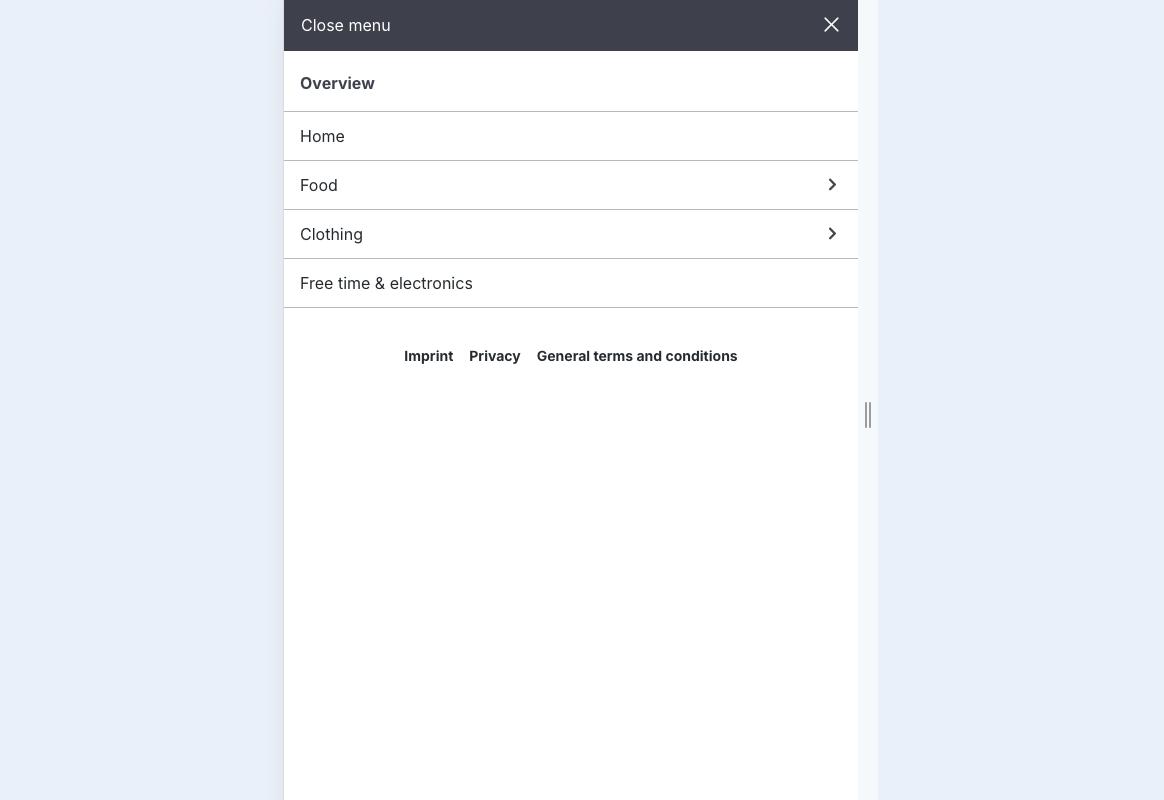Außerdem kann bei Bedarf das Menü in der Smartphone-Ansicht in voller Breite angezeigt und die Schriftgröße der Schließen-Schaltfläche angepasst werden.