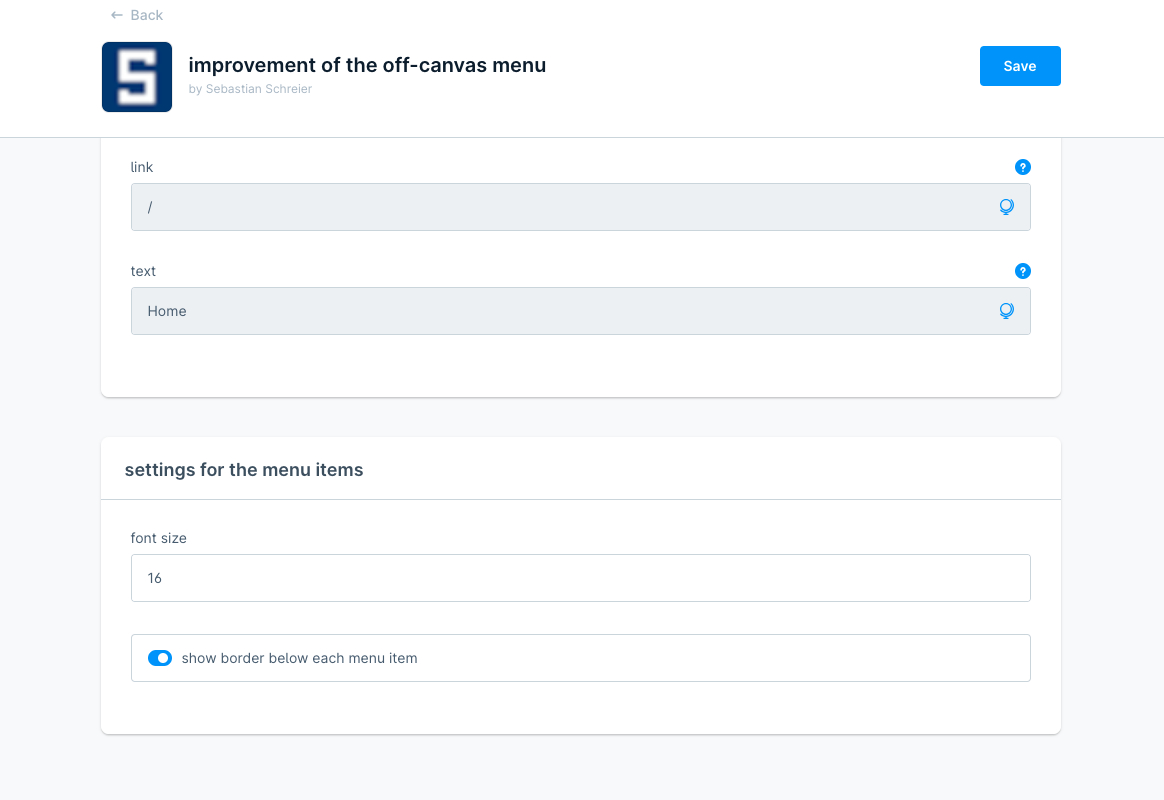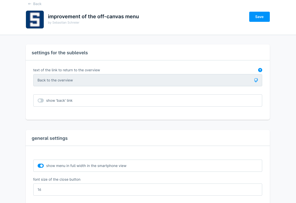 Die Shopware 6-App "Verbesserung des Off-Canvas-Menüs" verbessert das Off-Canvas-Menü.