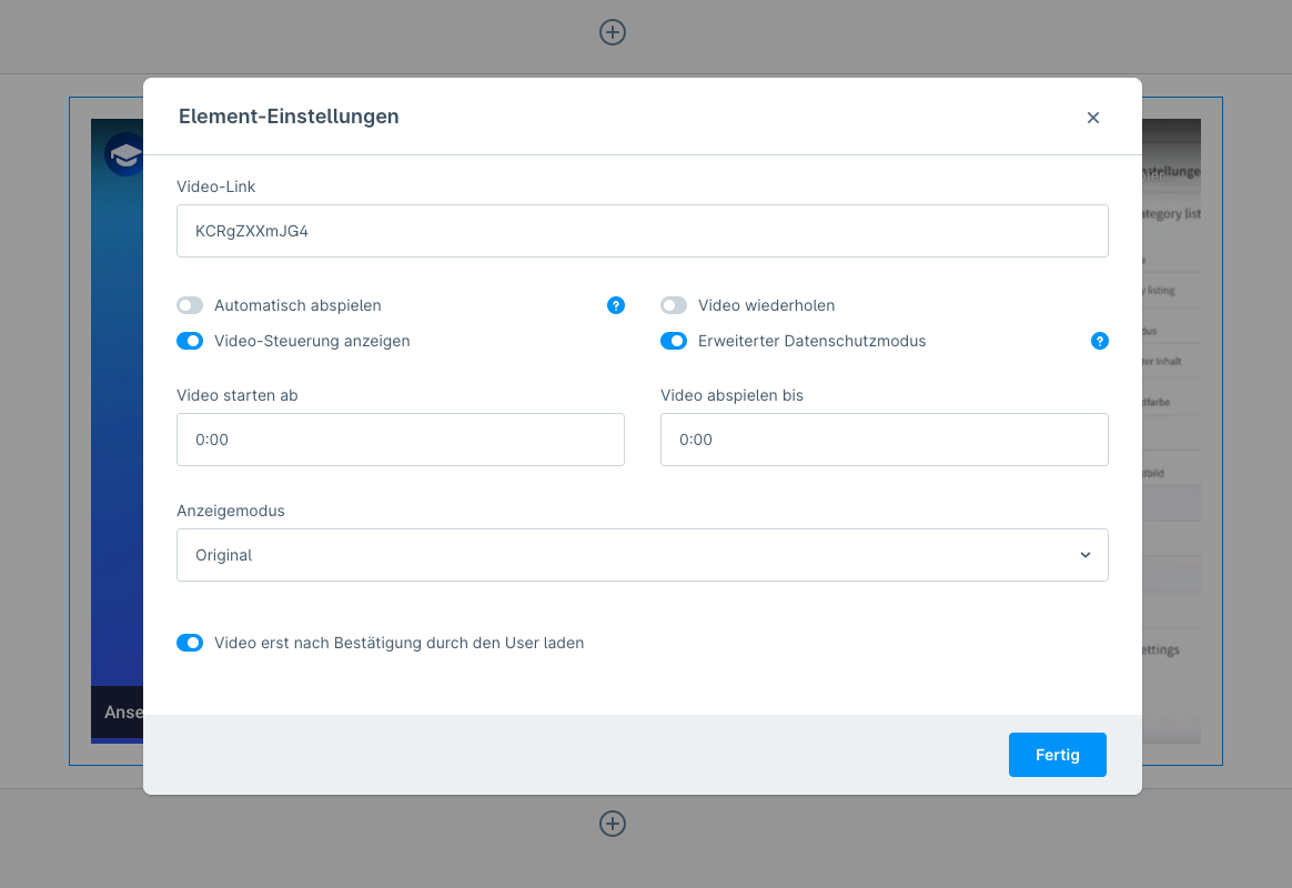 In Shopware 6 kann man ein YouTube-Video über den CMS-Block "YouTube-Video" und ein Vimeo-Video über den CMS-Block "Vimeo-Video" aus der Block-Kategorie "Video" umsetzen. Bei beiden CMS-Elementen kann über den Schalter "Erweiterter Datenschutzmodus" festgelegt werden, dass die Video-Plattformen solange keine Informationen über die Besucher der Webseite speichern, bis sie sich das Video ansehen. Im Sinne der Barrierefreiheit sollte der Schalter "Video-Steuerung anzeigen" aktiviert bleiben, den Schalter "Automatisch abspielen" sollte man hingegen deaktiviert lassen. Um die Ladezeit der Webseite nicht unnötig negativ zu beeinflussen, empfiehlt es sich, auch den Schalter "Video erst nach Bestätigung durch den User laden" zu aktivieren.