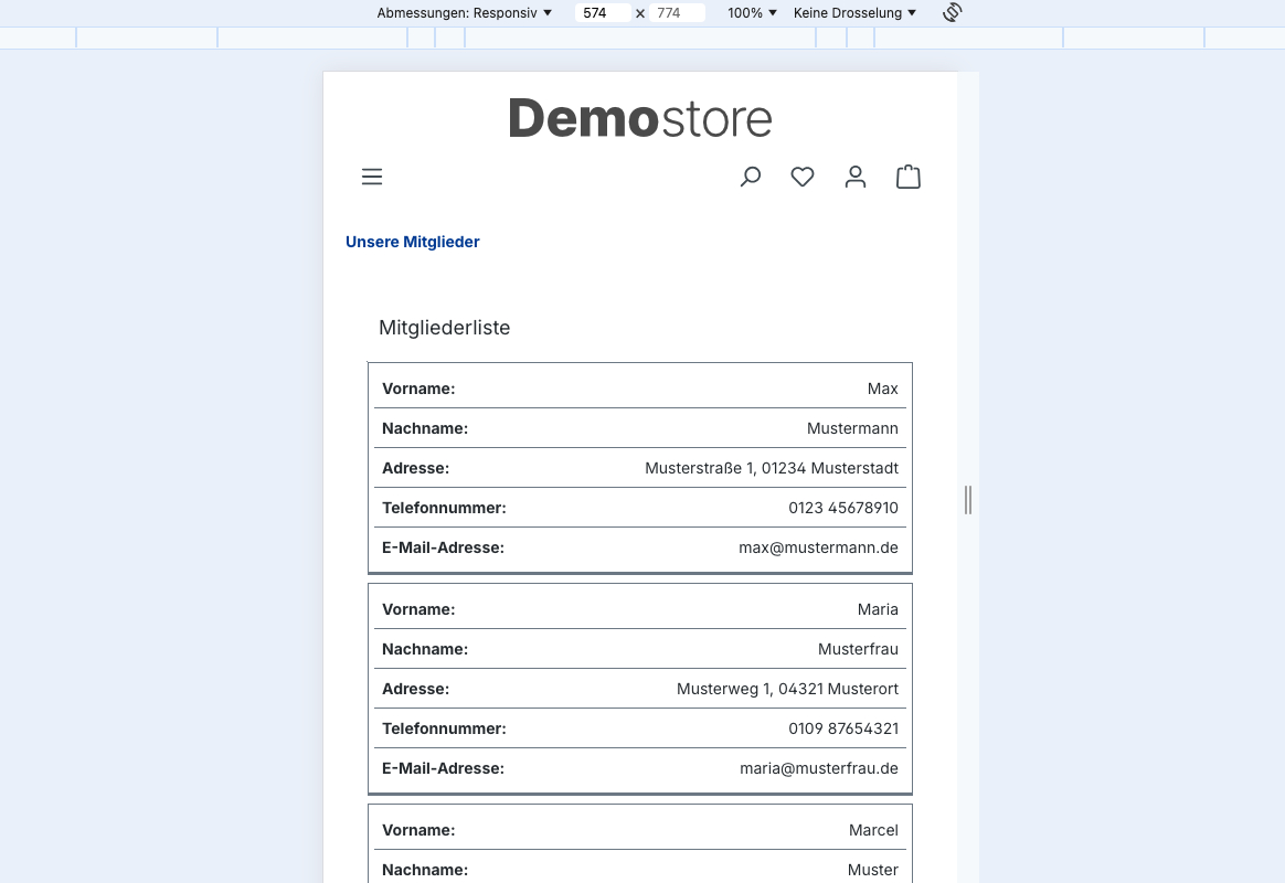 <td data-label="Adresse">Musterstraße 5, 03579 Musterstadt</td>